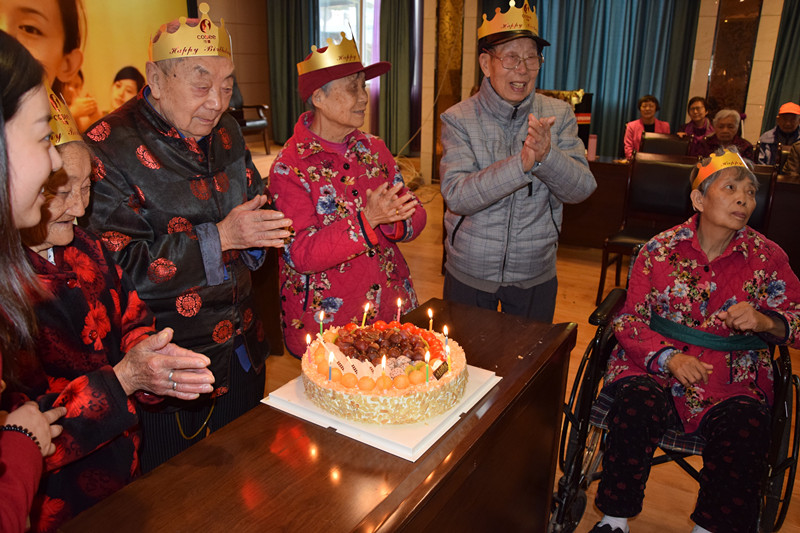 本月一共有9位寿星老人。主持人胡晋、黄铄钥按照以往惯例,一一介绍每一位寿星,分享每一位寿星老人的快乐。一首欢快活泼的《桃花朵朵开》拉开了本次生日会的序幕,顿时将本次生日会推向了高潮。一曲结束,在大家的掌声和欢呼声中,休养区老年合唱团献唱歌曲《天耀中华》,老年朗诵小组也带来了诗词《你是人间的四月天》,老人们认真的表演为生日会增添了别样的精彩。特教老师也带着小朋友们为爷爷奶奶献上歌舞《宝贝宝贝》,孩子们的天真可爱让爷爷奶奶笑得合不拢嘴。