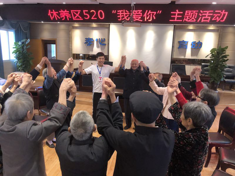 5月20日,谐音“我爱你”,被大家称为“网络情人节”。当日,我院休养区工作人员为住养老人开展了这次爱的主题活动,让爷爷婆婆在活动上对老伴、工作人员或室友表白,大声说出“我爱你”。