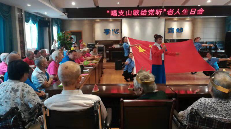 舞蹈《生命的火花》拉开了本次生日会序幕,表达了大家对寿星们的真诚祝福。安保科科长陈吉明独唱一曲《万爱千恩》,唱出了对父母的爱,优美婉转的旋律让人仿佛置身于儿时父母温暖的怀抱中。顺庆区公安局关工委志愿者们也带来《绣红旗》、《浏阳河》等节目,将大家带入到党的峥嵘岁月中。福利院老年合唱团为大家精心准备的歌曲《唱支山歌给党听》将生日会推向高潮,很多人加入到合唱中,大家置身于嘹亮的歌声中,深受感染。