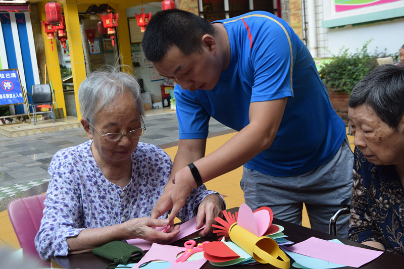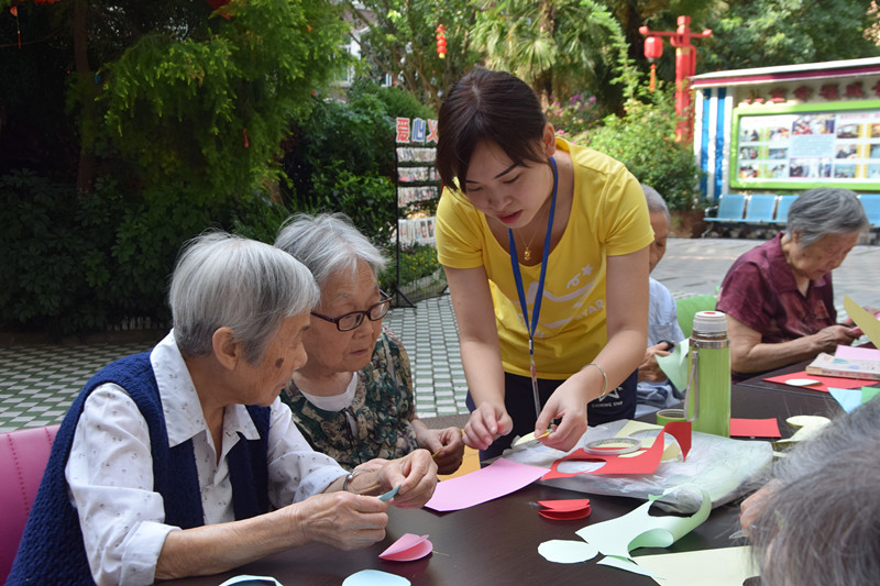 上午9时,院坝花园早已摆好桌椅和手工材料,老人、儿童陆续团团围坐,翘首期待这些五颜六色的材料变成有趣的创意作品。工作人员先出示一个精美的手工成品,向大家讲解制作步骤。听完介绍后,大家迫不及待的动手体验制作,现场儿童、老人分工合作,一方负责剪纸,另一方做好粘贴工作,不一会,桌子上摆满了一个个彩色的小灯笼。 伴随着欢声笑语,创意手工活动圆满结束。此次活动不仅让老人、儿童了解传统节日中秋,更让他们体验了动手与分享的快乐。 (周宇)