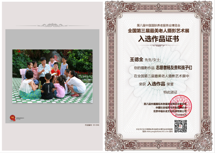 王爷爷在“2019摄影总结”中写道:自今年1月以来,共完成14组摄影投稿,其中4组作品分别获得“全国第三届最美老人摄影艺术展入选作品”、“ 四川油气田第六届夕阳红杯一等奖”、“2019年第三季度‘宇丰杯’纪实类摄影季赛优秀奖”、“南充市第七届摄影大会优秀奖”,2组作品刊载于《影友》杂志和《人民摄影报》。王爷爷认为,投稿和参赛都是让摄影技术精进的途径。每一次创作,从题材选取、视觉构图到表现技巧,他都要反复琢磨,力求达到最好效果。