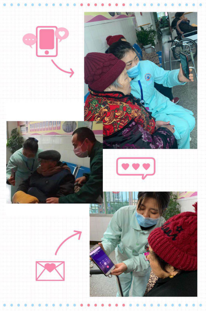 疫情爆发以来,特护区为了加强疫情防控,为了让家属及时了解老人情况,工作人员不间断、不定时向老人家属转发老人视频以及连接微信视频通话;建立家属微信群,让彼此报平安;随时给予老人及家属精神慰藉;向家属及老人宣传疫情防控知识;制作爱心口罩,做好老人及家属的自身防护。