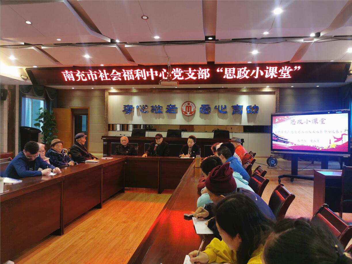 为深入推进党史学习教育,用党史故事激发党员干部和老人、儿童的爱党爱国热情,充分发挥红色基因铸魂育人的积极作用。4月23日,南充市社会福利中心党支部以回顾党的奋斗历程、讴歌党的丰功伟绩为主线,开展党史学习教育系列活动之“思政小课堂”。活动由党支部副书记焦静主持。