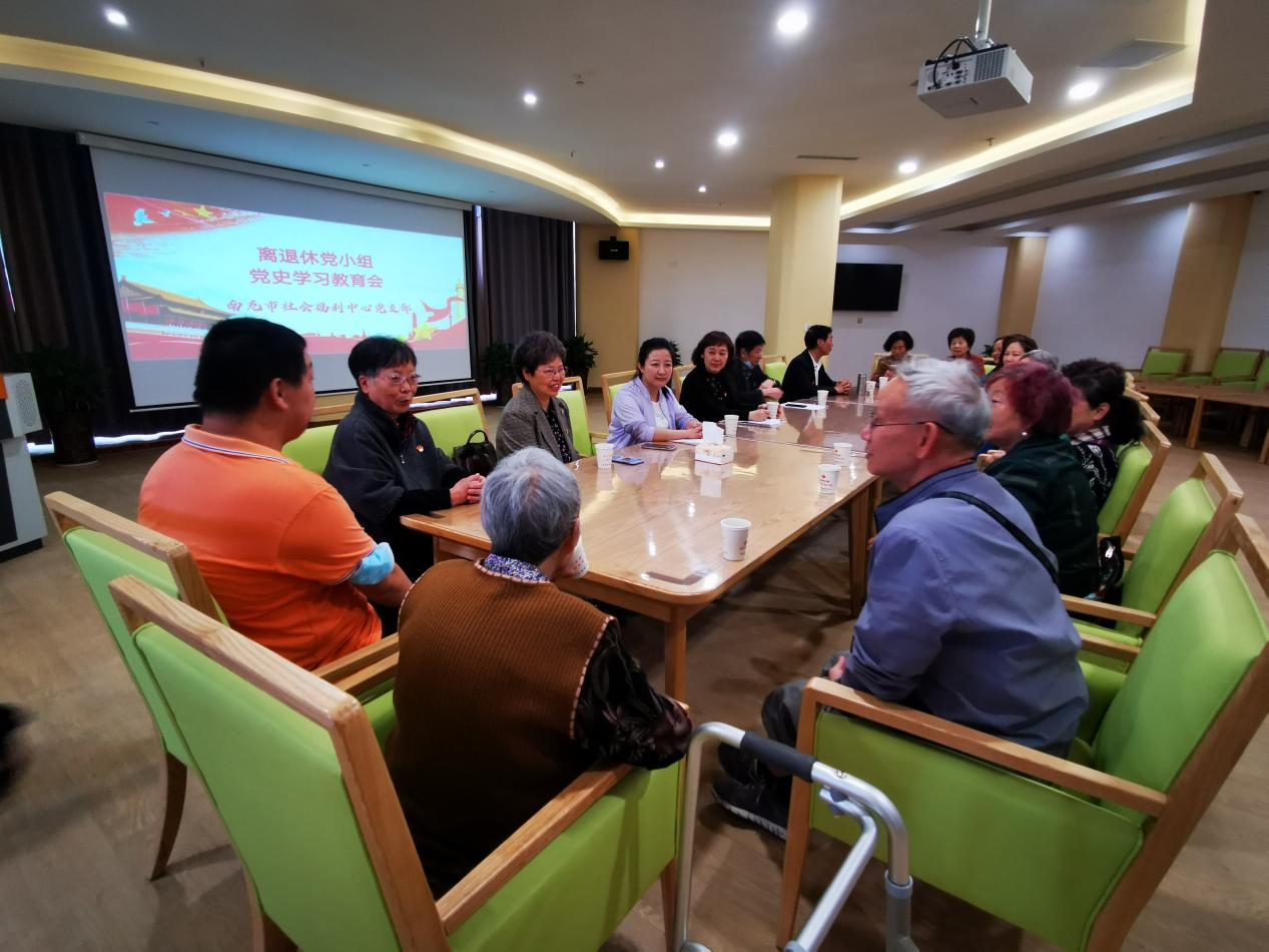 为深入开展离退休党员党史学习教育,感受在党的光辉沐浴下福利中心的发展变化,5月26日,南充市社会福利中心党支部在小龙新院区开展离退休党小组党史学习教育活动,党支部副书记、副主任焦静主持,离退休党员、职工代表参加。