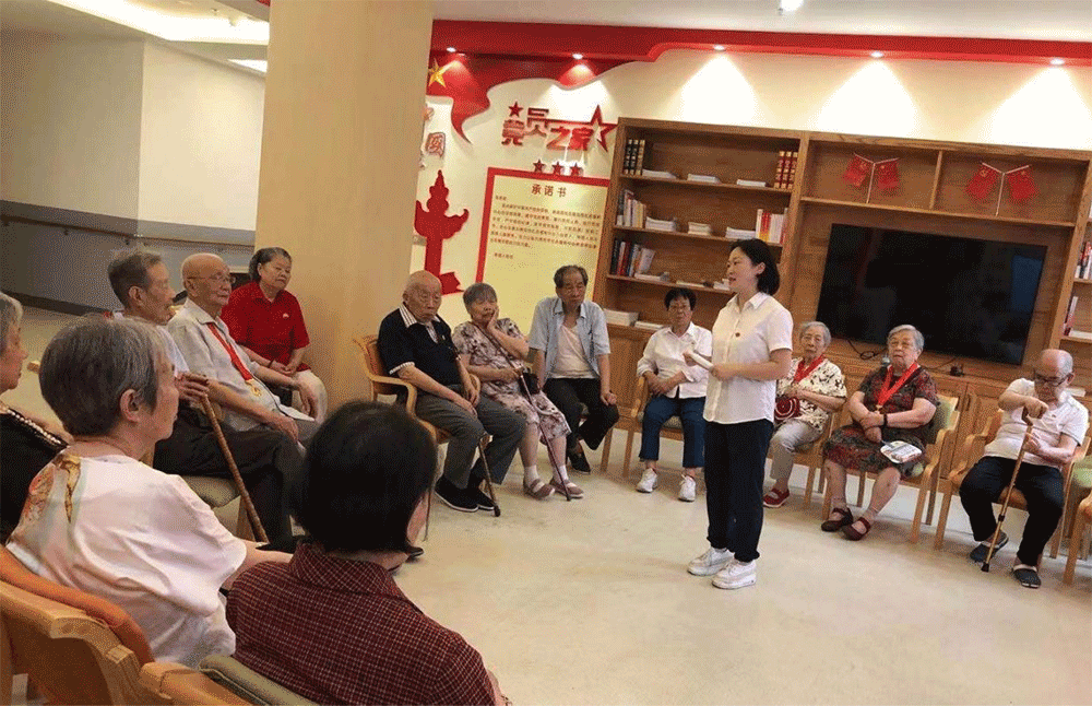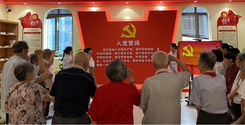 没有共产党就没有新中国。2021年7月1日,我中心新院区在党员活动区开展了“温誓词、学党史、忆初心、履承诺”主题活动。入住老党员、部分在职党员参加,活动还特别邀请了四川省优秀共产党员、全国孝亲敬老模范、中心长期志愿者杨友贵老师。
