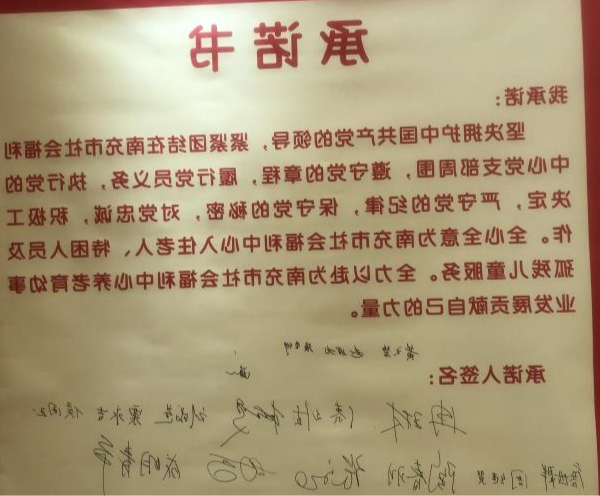 担使命,履承诺。在“为党服务,为中心老人、特困人员、孤残儿童服务”的承诺书上,党员纷纷签上自己的姓名,许下自己的庄严承诺。耄耋党小组、书法兴趣小组、耄耋合唱团、时政学习小组、老年志愿者服务小组等活动团体,均由入住老党员发起和组织开展,彰显了党性的光辉。