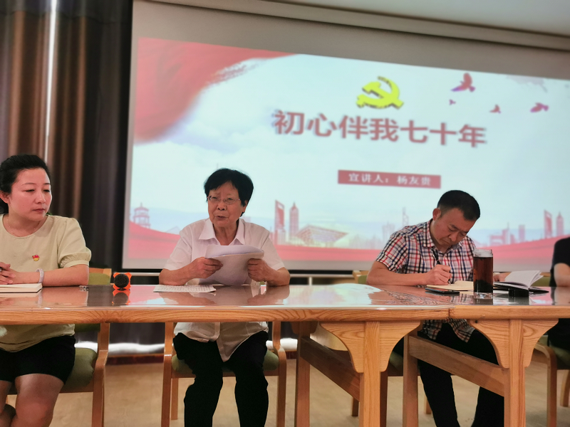 杨友贵老师以“初心伴我70年”为题作报告,用朴实的语言满含深情地回溯了自己的人生经历,一个个感人至深的小故事,深刻诠释了优秀共产党人初心不改、为民爱民、薪火相传的优秀品质。杨友贵老师说:“我这一辈子都是党的人,从入党的那一天起,党怎么指挥,我就怎么走;党叫我干什么,我就干什么!所以,不管是顺境也好、逆境也好,我都始终忠诚于党,始终坚定不移地跟党走,始终为党和人民的事业奋斗终身,党就是我一生的追随。”