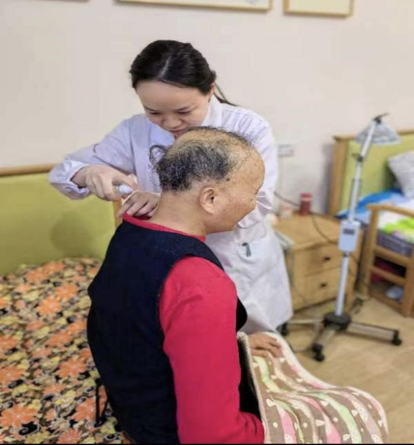 疫情期间,为确保我中心长者的康复治疗不间断,康复师除落实好日常护理任务,严格按照疫情防控要求做好消毒消杀工作外,坚持给每一个有康复需求的长者提供相应的康复治疗,缓解各类疾病带来的慢性疼痛,让长者足不出院就能获得有效的医疗康复资源。