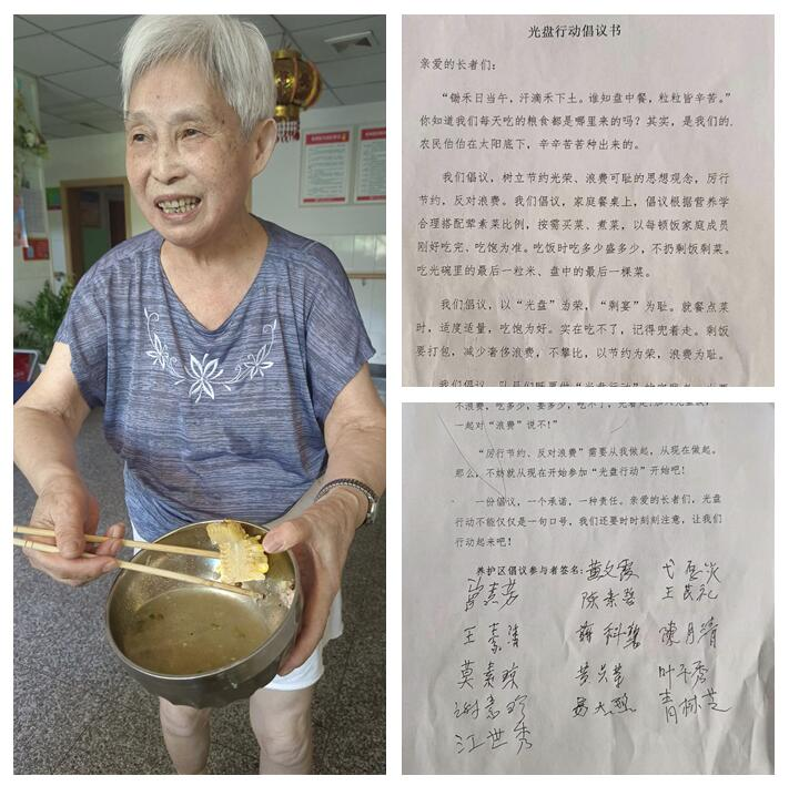 不少老人表示:“发扬中华民族勤俭节约优良传统,‘节约粮食,人人有责’,我们都是从苦难日子过来的人,知道粮食的珍贵,知道粮食对国家和人民的重要性,特别是疫情影响,我们更不能浪费粮食,虽然我们已经老了,但我们也要积极行动起来,为国家做一点力所能及的事!”。