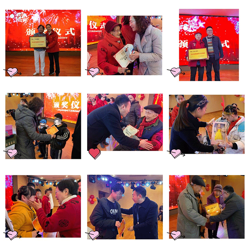 联欢会上,单位领导班子和爱心志愿者杨友贵老师分别为住养长者、儿童颁奖。